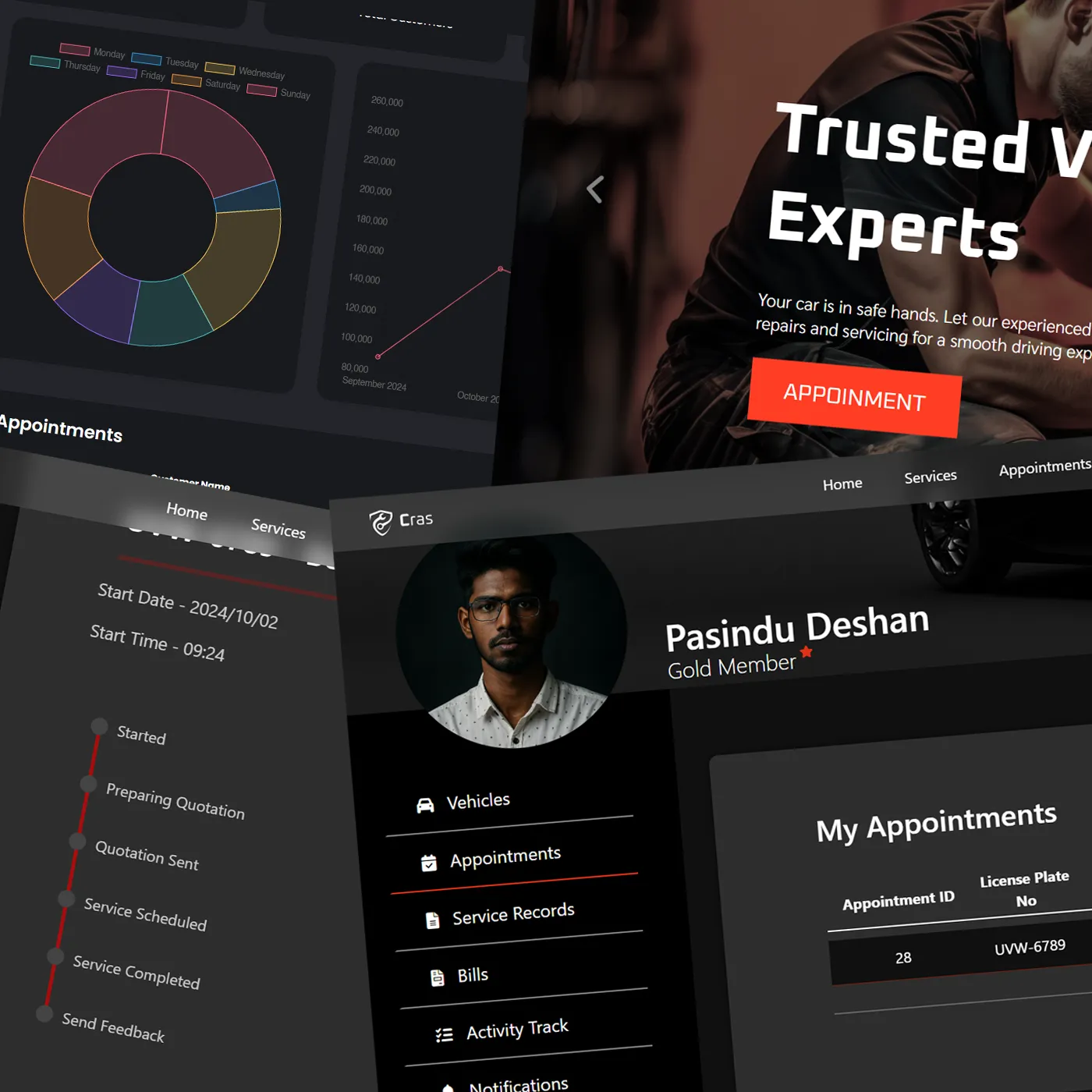 The AutoMobile Project is a vehicle management system for service centers, handling customer records, service tracking, inventory, billing, and real-time notifications. It features secure login, profile customization, and responsive design, creating an efficient workflow for auto-repair businesses.
