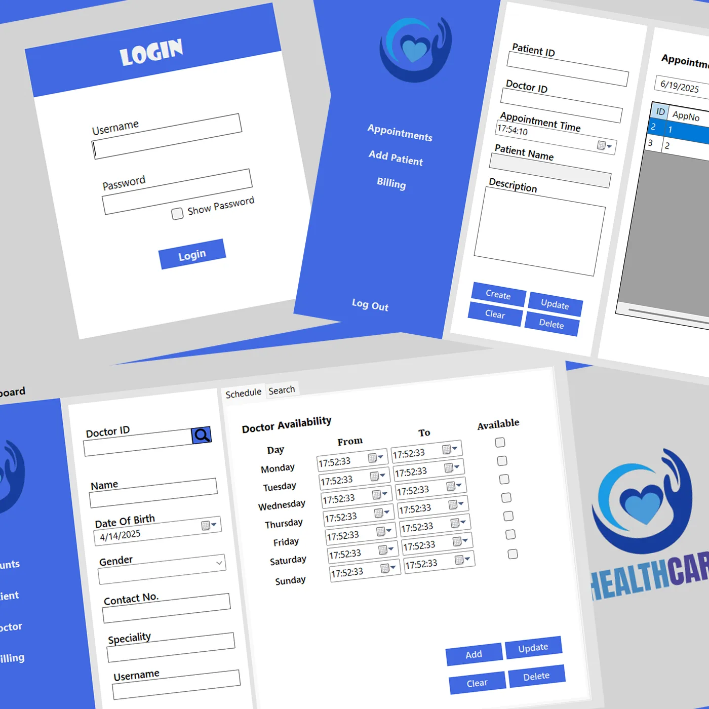 A role-based desktop Hospital Management System with separate dashboards for Admin, Doctors, and Receptionists, allowing patient registration, appointment scheduling, doctor management, and medical record storage.